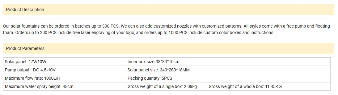 हॉट टैग: 10W सोलर डीसी आउटपुट गार्डन फाउंटेन पंप बर्ड बाथ फाउंटेन आउटडोर हाई पावर सोलर फाउंटेन, थोक, चीन, नवीनतम, टिकाऊ, नवीनतम बिक्री, निर्माता, चीन में निर्मित