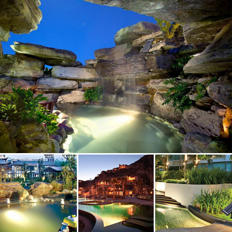 नई सौर एलईडी लाइट्स IP68 सौर पानी के नीचे रंगीन रोशनी आउटडोर उद्यान पूल सजावटी प्रकाश व्यवस्था